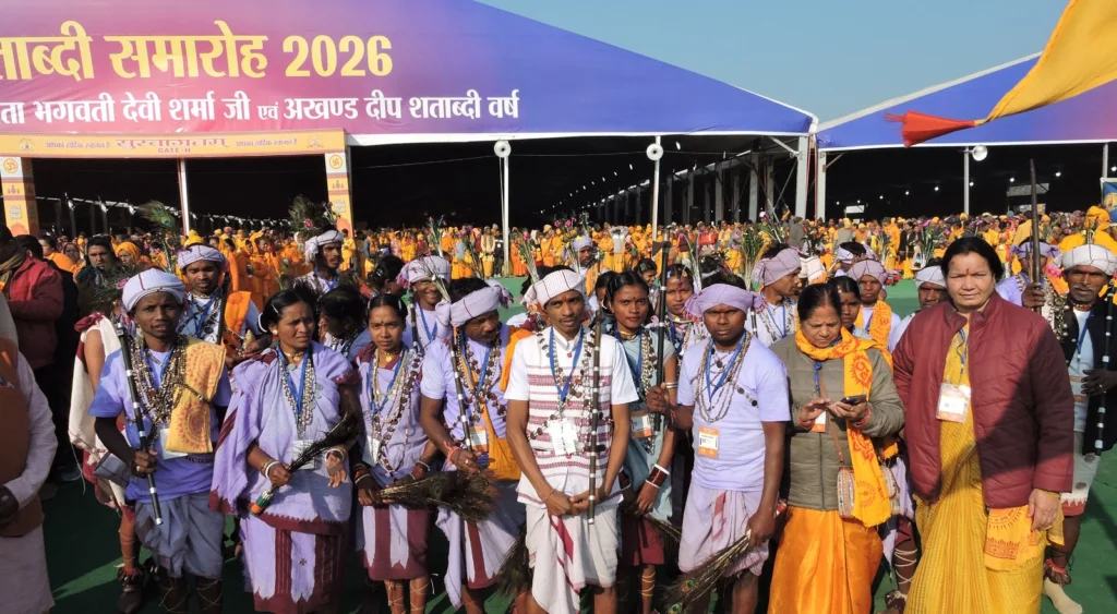 इसी क्रम में मध्यप्रदेश का भगोरिया एवं भड़म-गौर नृत्य उत्साह, उमंग और लोकजीवन की मस्ती को अभिव्यक्त करता हुआ यात्रा का विशेष आकर्षण बना। रंग-बिरंगे परिधानों, पारंपरिक वाद्ययंत्रों और सामूहिक नृत्य-लय ने सम्पूर्ण यात्रा को उल्लास से भर दिया। ज्योति कलश यात्रा में विविध राज्यों की इन सांस्कृतिक प्रस्तुतियों ने यह संदेश दिया कि गायत्री परिवार केवल आध्यात्मिक चेतना का नहीं, बल्कि सांस्कृतिक एकात्मता और राष्ट्रीय समरसता का भी सशक्त माध्यम है। जब ज्योति के साथ लोकसंस्कृति की धड़कनें जुड़ीं, तो यह यात्रा भारत की आत्मा का सजीव उत्सव बन गई।