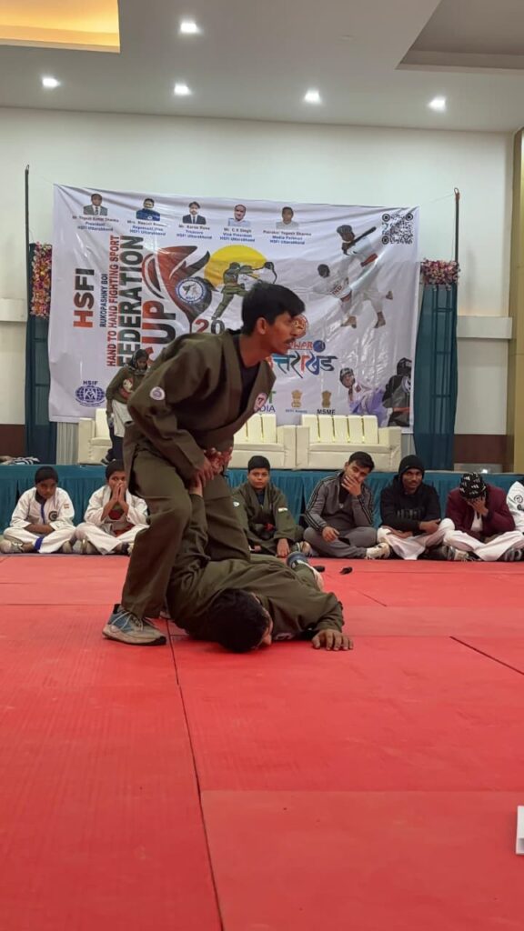 हरिद्वार। हैंड-टू-हैंड फाइटिंग स्पोर्ट फेडरेशन ऑफ इंडिया (एचएसएफआई) के तत्वावधान में हैंड टू हैंड फाइटिंग स्पोर्ट उत्तराखंड एसोसिएशन द्वारा हैंड टू हैंड फाइटिंग स्पोर्ट फेडरेशन कप 2025 का तीन दिवसीय भव्य आयोजन डेंसो चौक सिडकुल स्थित गोल्डन ट्री वैकंट हाल में किया जा रहा है। फेडरेशन के प्रदेशध्यक्ष योगेश शर्मा ने बताया कि इस प्रतियोगिता का मुख्य उद्देश्य युवाओं में ड्यूल डिसिप्लिन-फाइट एवं सेल्फ डिफेंस के प्रति जागरूकता बढ़ाना तथा खेल प्रतिभाओं को राष्ट्रीय स्तर पर मंच है। इस प्रतियोगिता में विभिन्न राज्यों बिहार, उड़ीसा, महाराष्ट्र, उत्तर प्रदेश, हरियाणा, पंजाब, दिल्ली केरल, सहित अन्य राज्यों के खिलाड़ी भाग लेकर और अपनी खेल प्रतिभा का प्रदर्शन कर रहे है। उन्हांेने कहा कि आयोजन को एशियन हैंड -टू-हैंड फाइटिंग फेडरेशन एवं हैंड-टू-हैंड फाइटिंग स्पोर्ट इंटरनेशनल फेडरेशन से संबद्धता प्राप्त है। साथ ही यह फेडरेशन फिट इंडिया (युवा कार्य एवं खेल मंत्रालय, भारत सरकार) द्वारा मान्यता प्राप्त है। इस आयोजन को सफल बनाने में किसी सरकारी एवं गैर-सरकारी संगठन की सहायता नहीं मिली। लेकिन प्रतियोगिता के मुख्य प्रायोजक अशोक कुमार कैट्रेस एवं अर्जुन सिंह का विशेष सहयोग प्राप्त हुआ हैं। जिलाध्यक्ष अर्जुन पाल सिंह ने कहा कि यह आयोजन उत्तराखंड को मार्शल आर्ट एवं सेल्फ डिफेंस समेत युवाओं को नशे के दूर रखने के लिए खेलों के मानचित्र पर नई पहचान दिलाने में महत्वपूर्ण भूमिका निभाएगा। कार्यक्रम में मुख्य अतिथि के तौर पर एचएसएफआई, फैडरेशन से राकेश निमेय सीनियर वाइस प्रेसिडेंट, महेन्द्र सिंह डिसिप्लिन डायरेक्टर, योगेश शर्मा प्रदेश अध्यक्ष, व्यापार मंडल, भगत सिंह चौक के अध्यक्ष अरूण तिवारी, अरूण पाल जिलाध्यक्ष, योगेश कुमार शर्मा वरिष्ठ पत्रकार, समाज सेवी अमित भारद्वाज, विकास झा पत्रकार, सहित अन्य मौजूद रहें